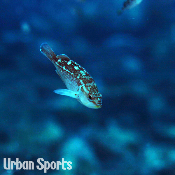 | 飛島エリアでのみ観察できる種と思っていたがこの年加茂で何個対か確認することができた。体色は小さいうちは淡褐色、背びれ付け根付近に白色斑点が目立つ。目から口にかけて黄褐色の線がある。成長すると赤橙色、淡色点をもち、尾びれ後縁に白色横帯があるのが特徴。 |