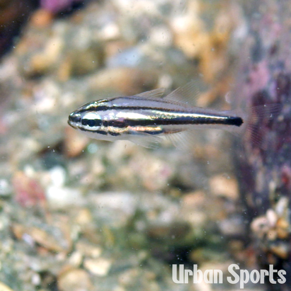 2020年10月加茂水族館サイドビーチでも確認されました。同じテンジクダイ科のネンブツダイに似る。透き通った体に背中に1本、体側に2本の黒帯がある。体側の一番長い黒帯は吻(口)から目を通り尾びれまであるが尾びれまではない。