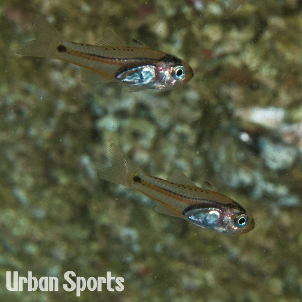 透き通った体に背中に1本体側に2本(目元は途中まで)の計3本の茶褐色縦線と尾びれ付け根の黒斑が特徴です。口の中で卵を守る(口内保育)魚の1種で夏の頃から見かけます。加茂ビーチでは20匹ぐらいの群れになっています。